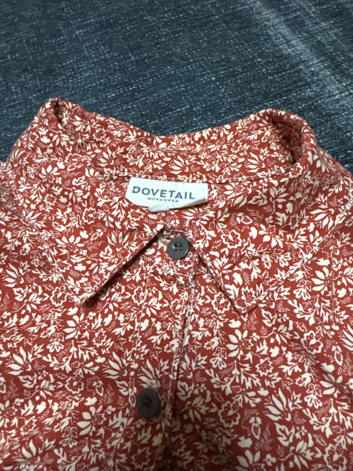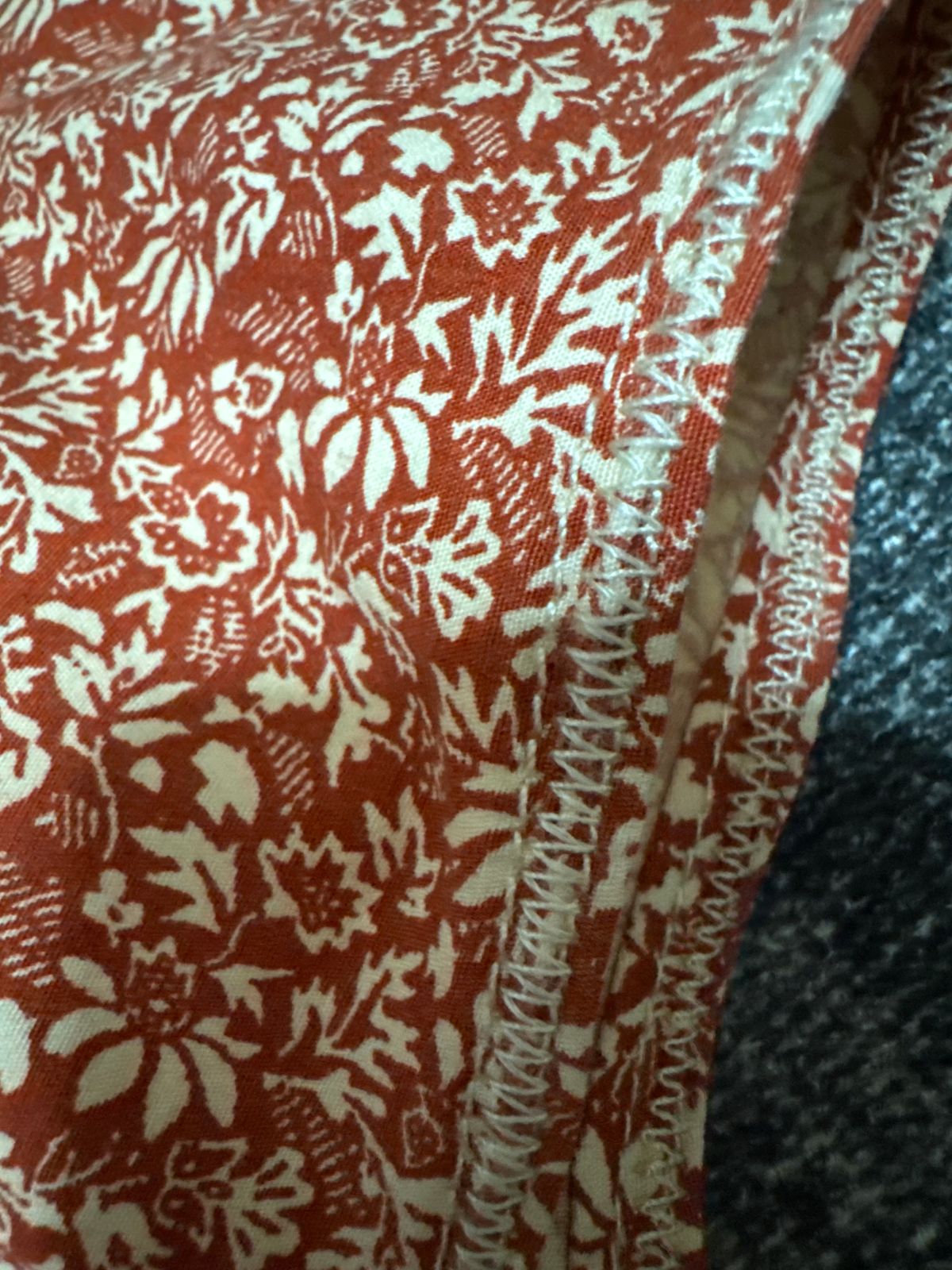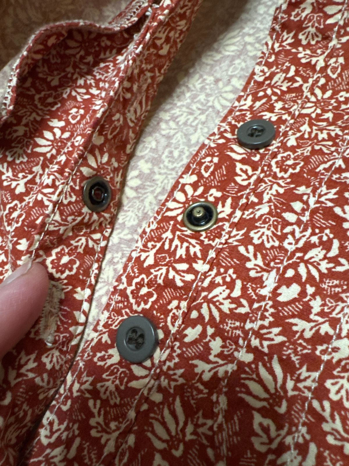 It’s very comfortable with some spandex stretch; yet crisp substantial weight cotton. Washes well and hangs dry ready to wear. Love the paprika color as well as the cotton/spandex fabric! Nicely fitted with a hidden snap at the bra point.