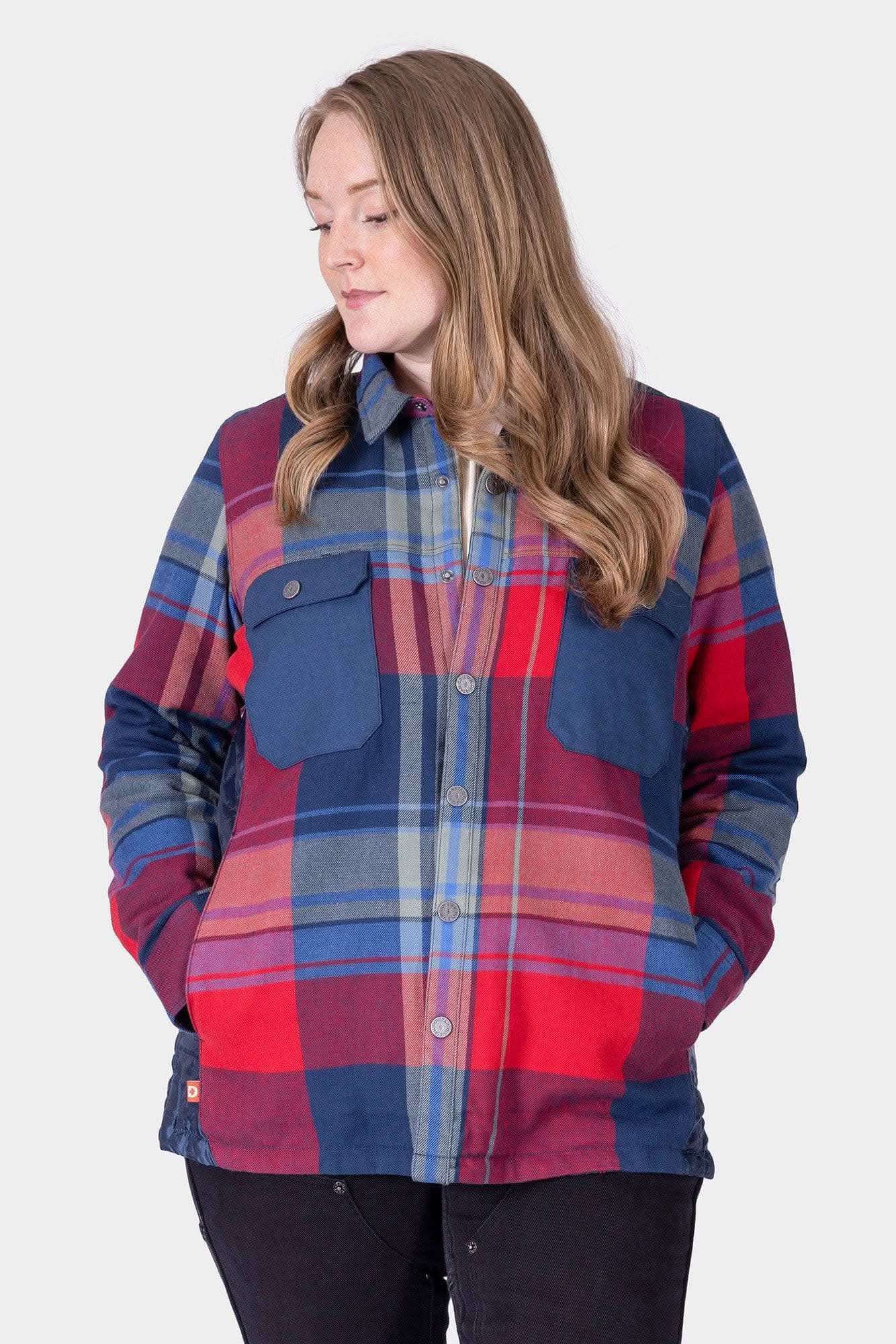 Wear it, flip it, work it. Grab this women's work jacket when you need to stay warm and feel cool. The Durham Quilted Shirt Jac is fully reversible, giving you two looks in one hardworking layer—rugged and quilted on one side, old-school flannel on the other. Toss it over a tee, layer it under a coat, or flip it midday just because you can. This is workwear with range. But don't let the good looks fool you. Canvas reinforcements at the elbows and shoulders give this work jacket real jobsite cred. It's insulated for warmth, but still lightweight and breathable, with a curved hem for easy movement and layering. 7 pockets—including 2 secure ones—keep your stuff close and your hands free. Durable enough for the workday. Sharp enough for the weekend. One piece, twice the mileage.