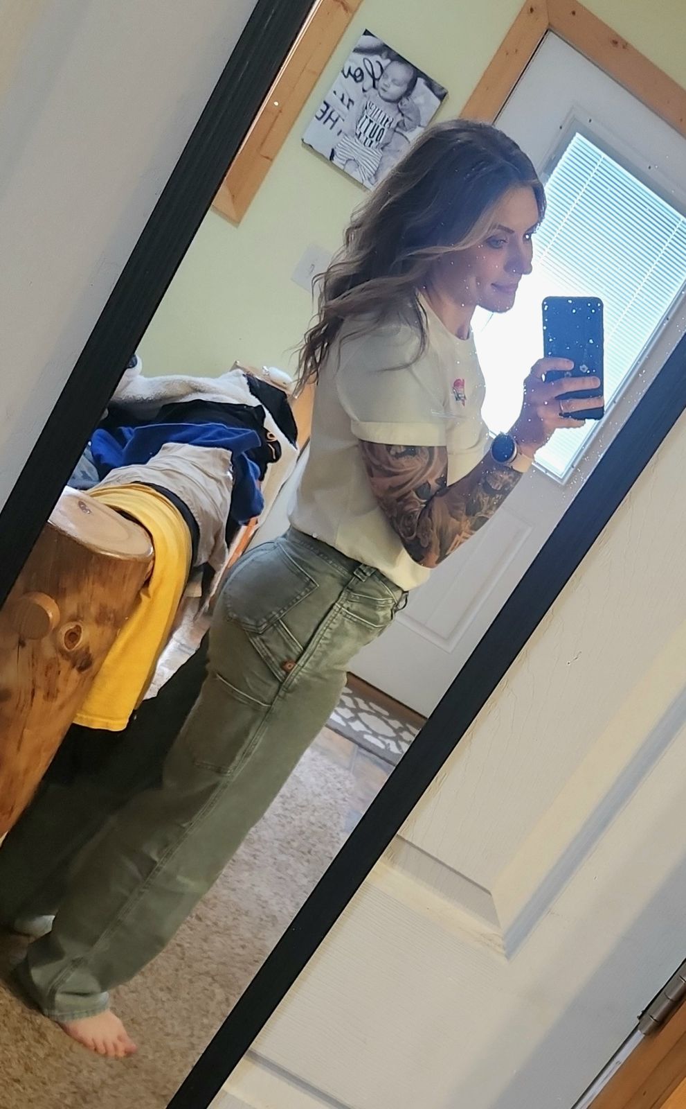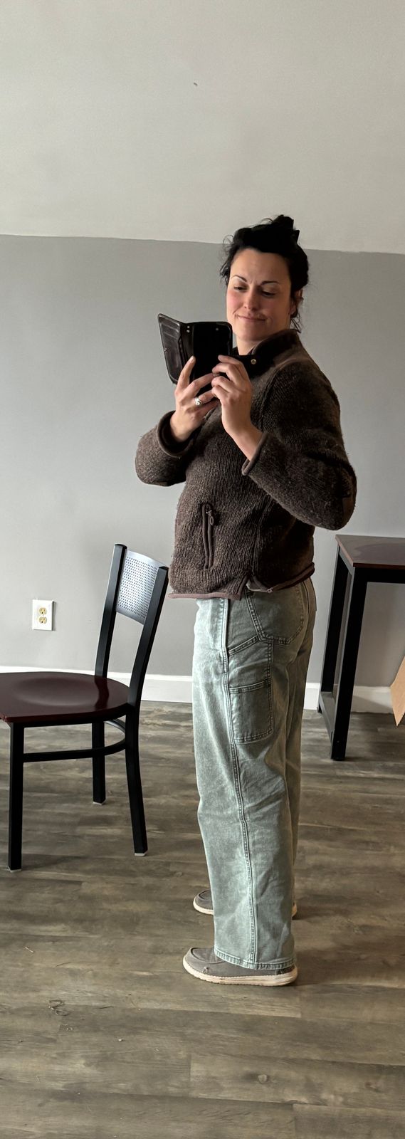 The high rise fit looks great and sits comfortably right where you want it. Deep front pockets and a secure phone pocket give you plenty of room for all your essentials. From work in the morning to patio drinks with friends after, these work pants for women are versatile, comfortable, and effortlessly cool.